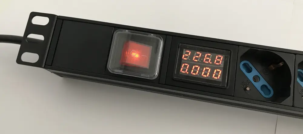 1u PDU with 6 universal sockets + light switch + ammeter + voltmeter