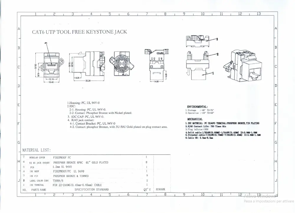 Cat.6 UTP slim white, self-crimping socket with rotating system.