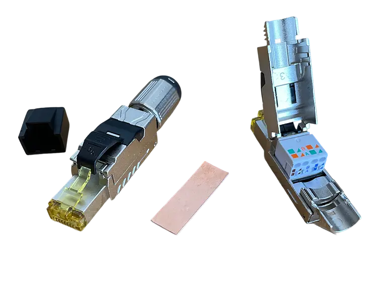 Cat.6A shielded RJ45 industrial modular plug, tool free.