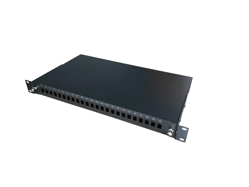 Optical drawer with 24 ports for SC Simplex and LC Duplex adapters.