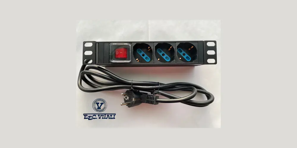 PDU with 3 Universal socket + Light Switch 1u